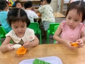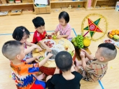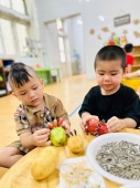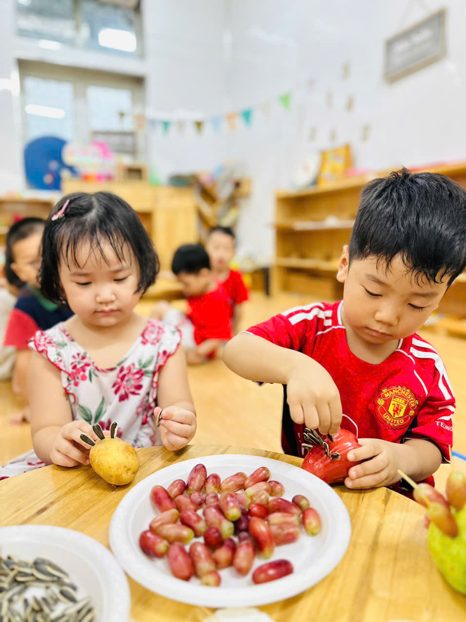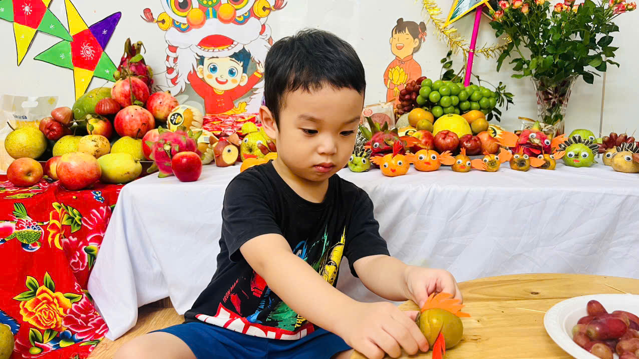 BÉ CÙNG CÔ TRANG TRÍ MÂM NGŨ QUẢ
