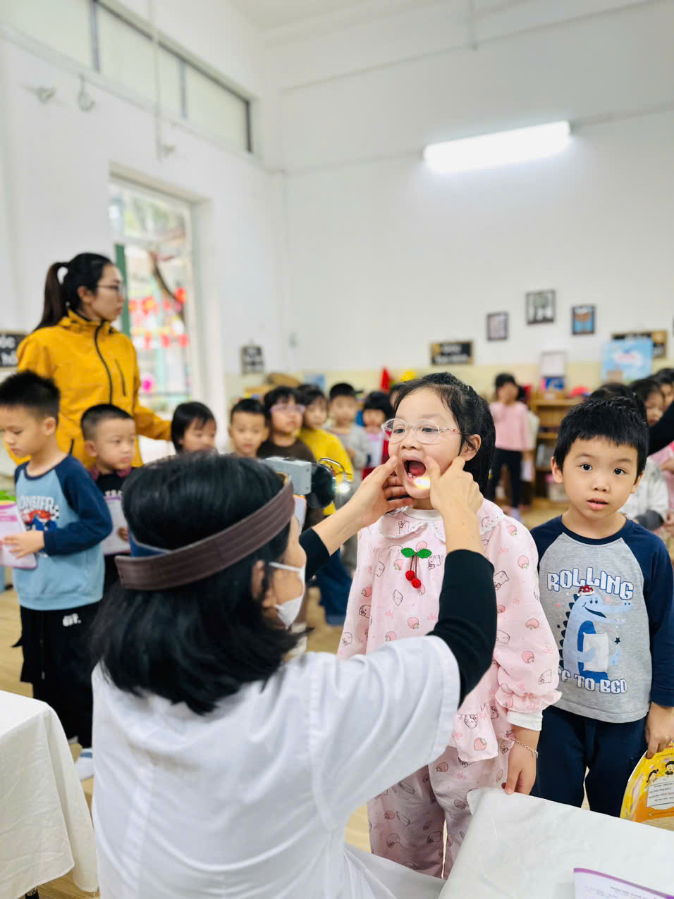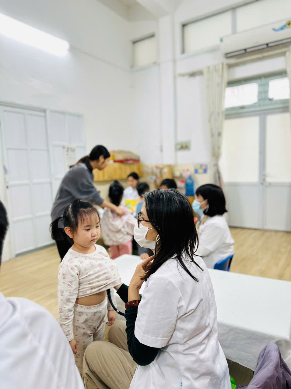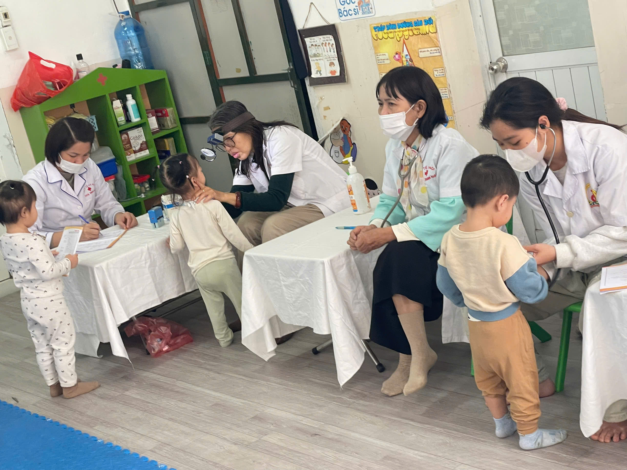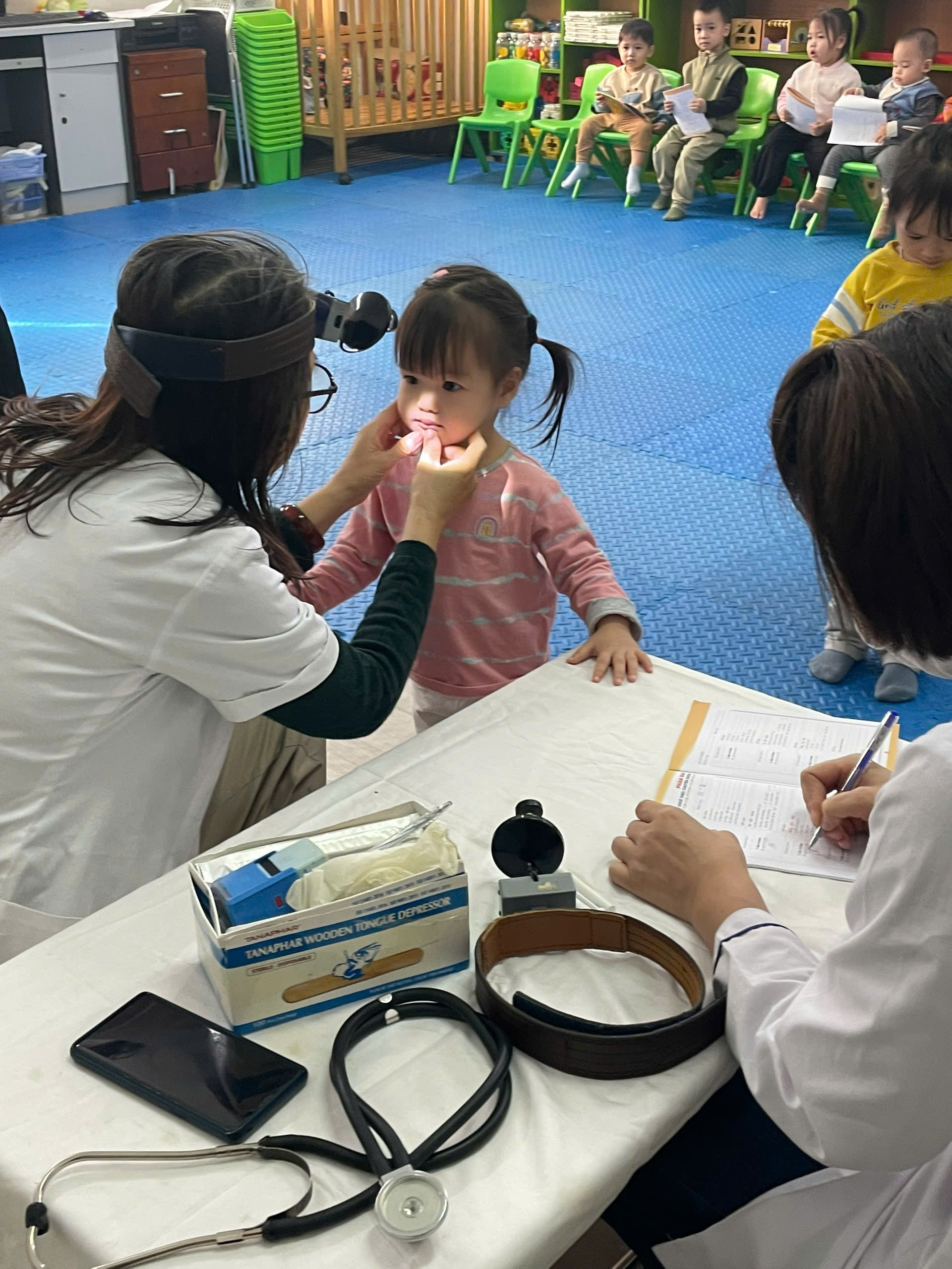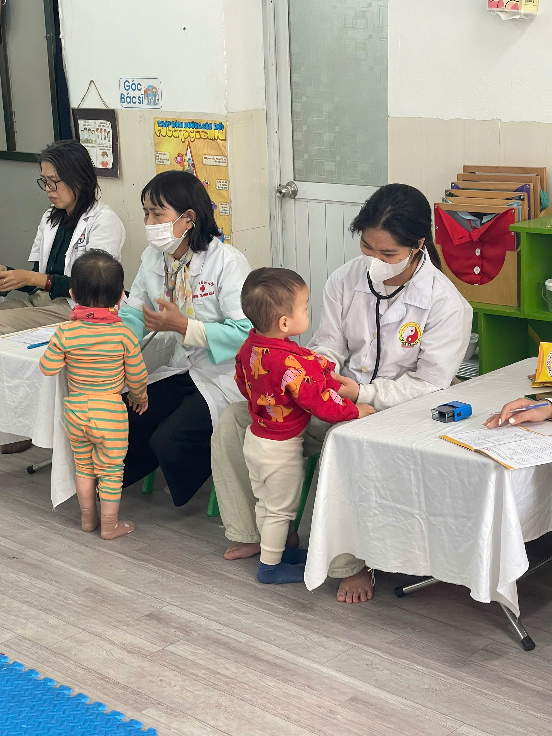 Một số hình ảnh minh họa trong buổi khám sức khỏe định kỳ cho trẻ tại trường Mầm non X20: