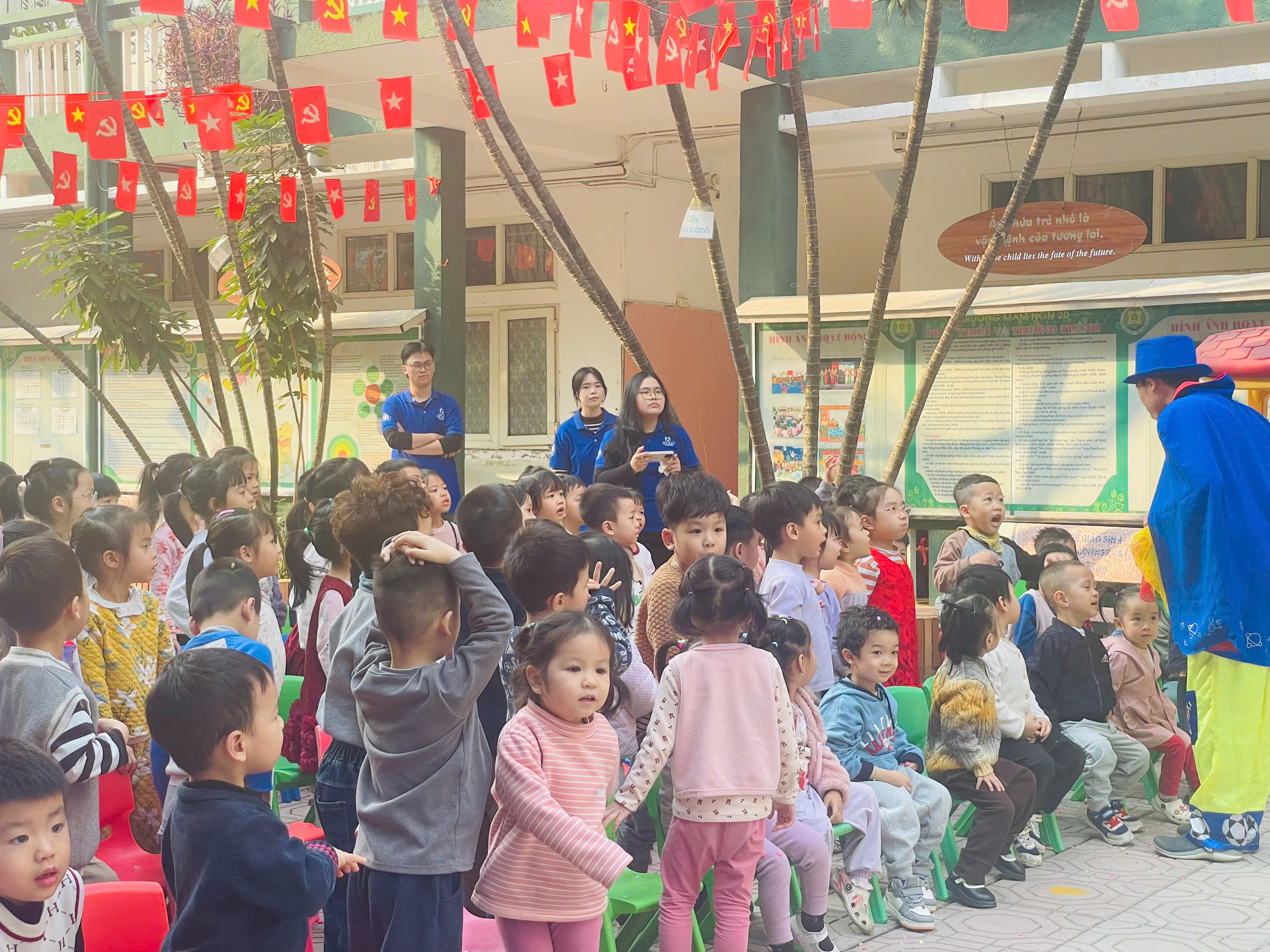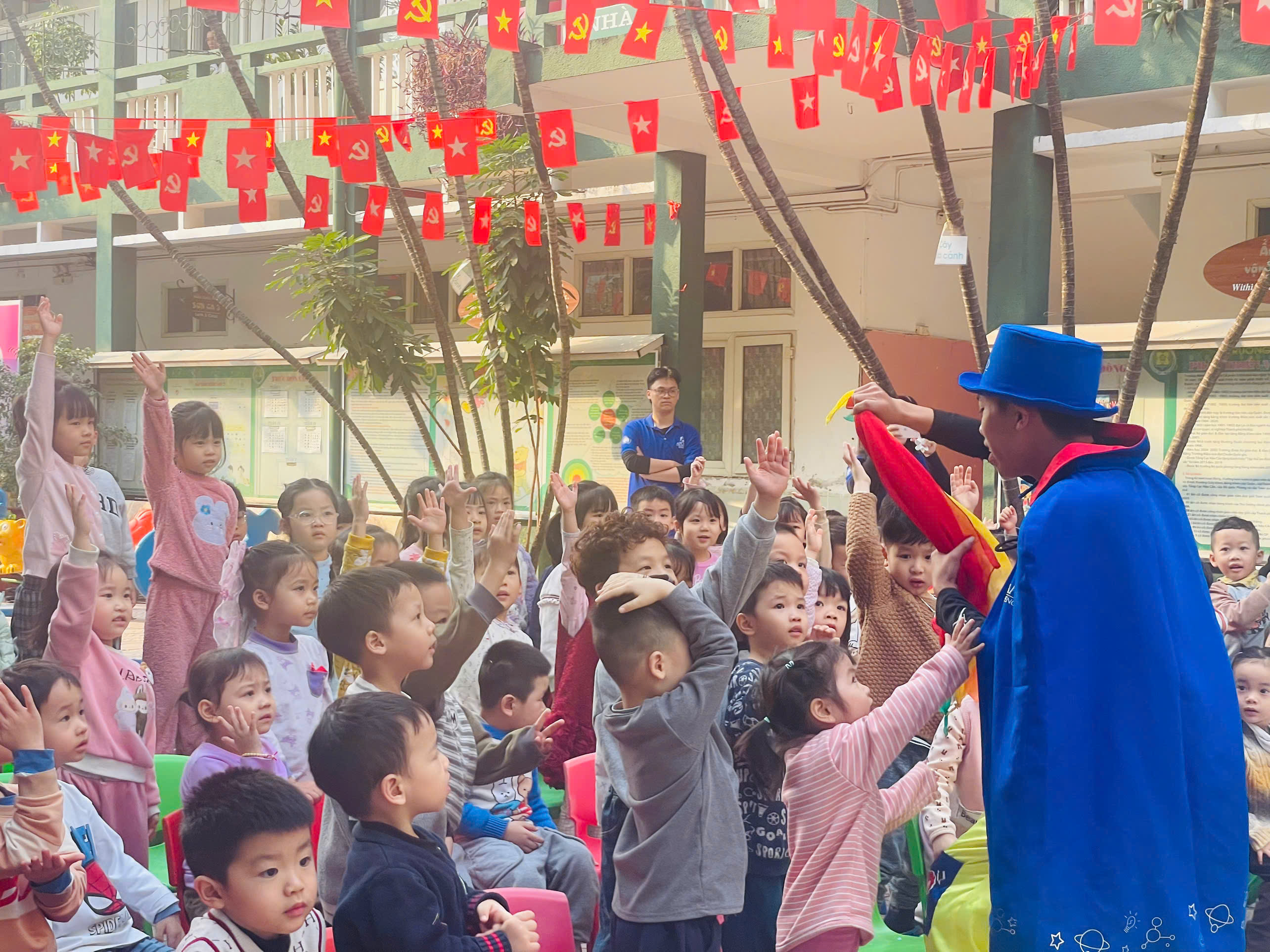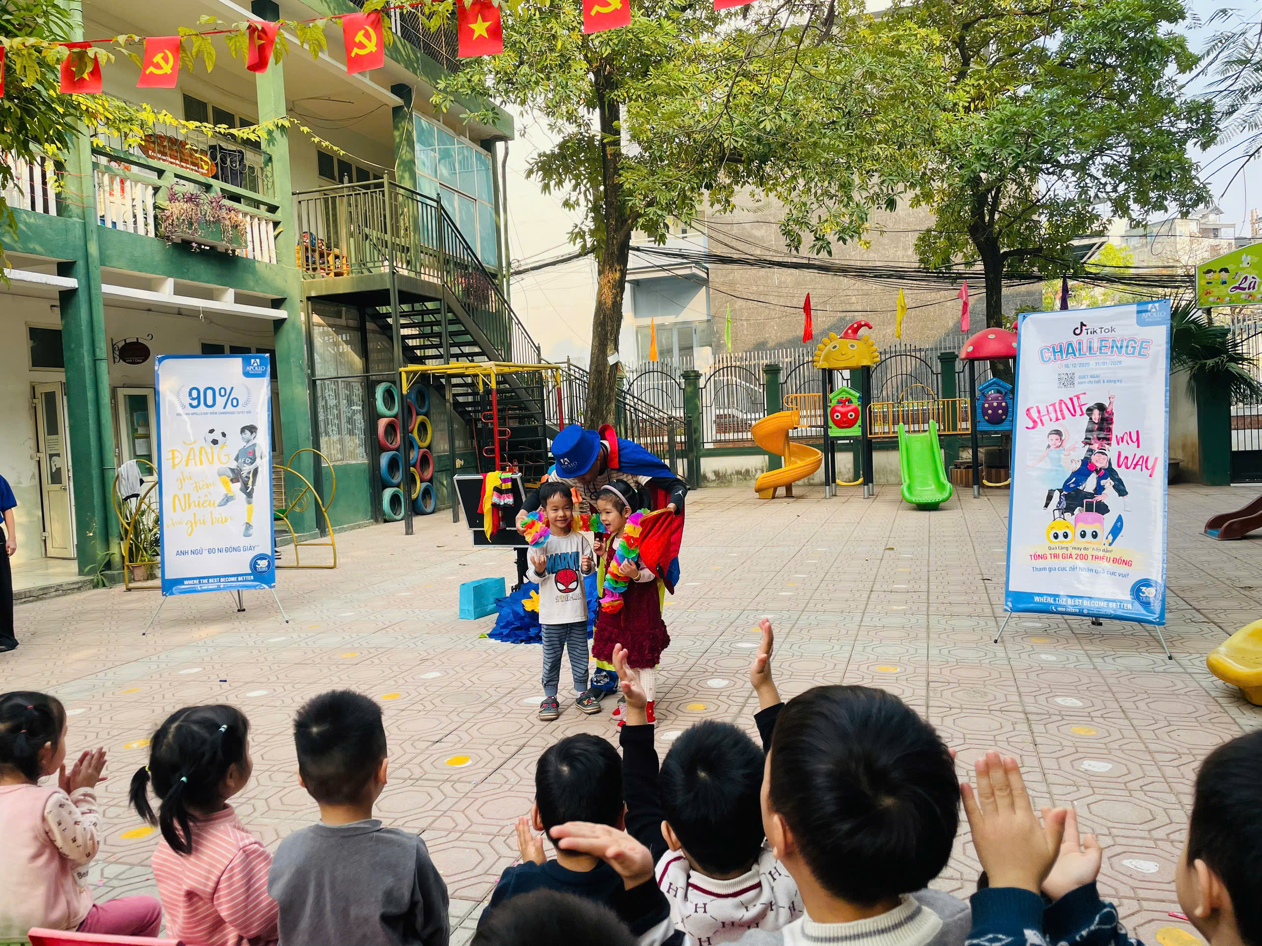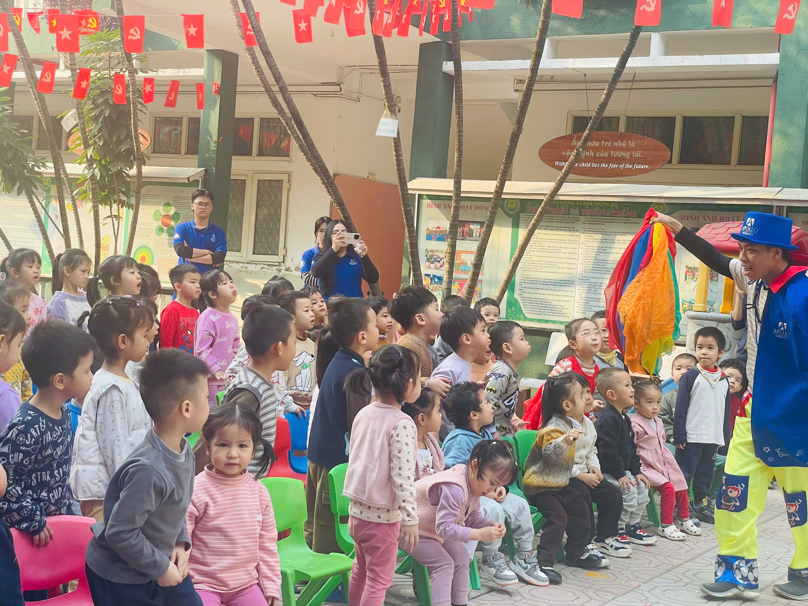 Mở đầu chương trình, các em học sinh đã được thưởng thức tiết mục ảo thuật đặc sắc do ảo thuật gia của Apollo English biểu diễn. Những màn ảo thuật hấp dẫn, sinh động đã thu hút sự chú ý và mang lại niềm hào hứng cho các con, góp phần tạo nên không khí lễ hội vui nhộn trong khuôn viên nhà trường.
