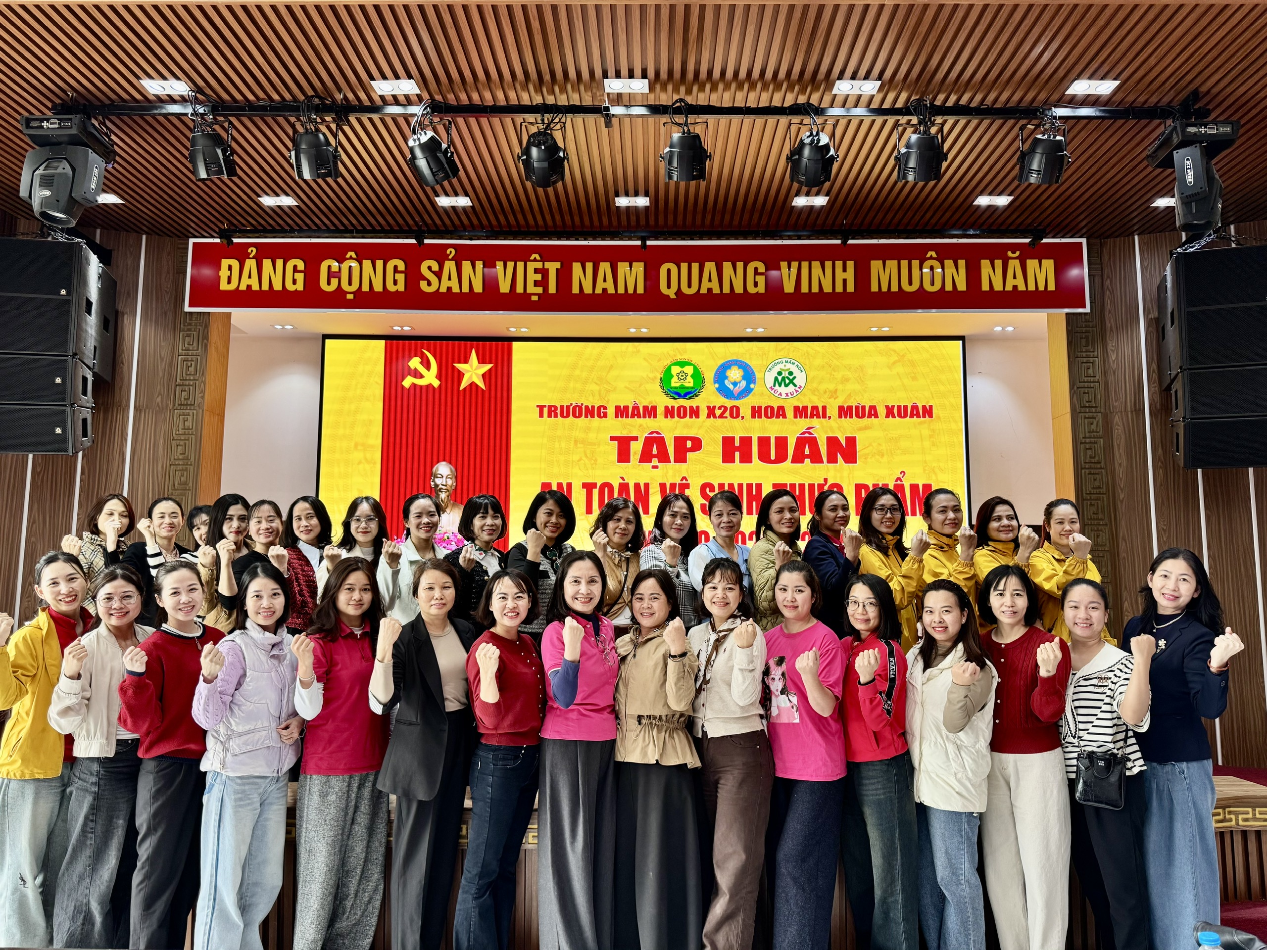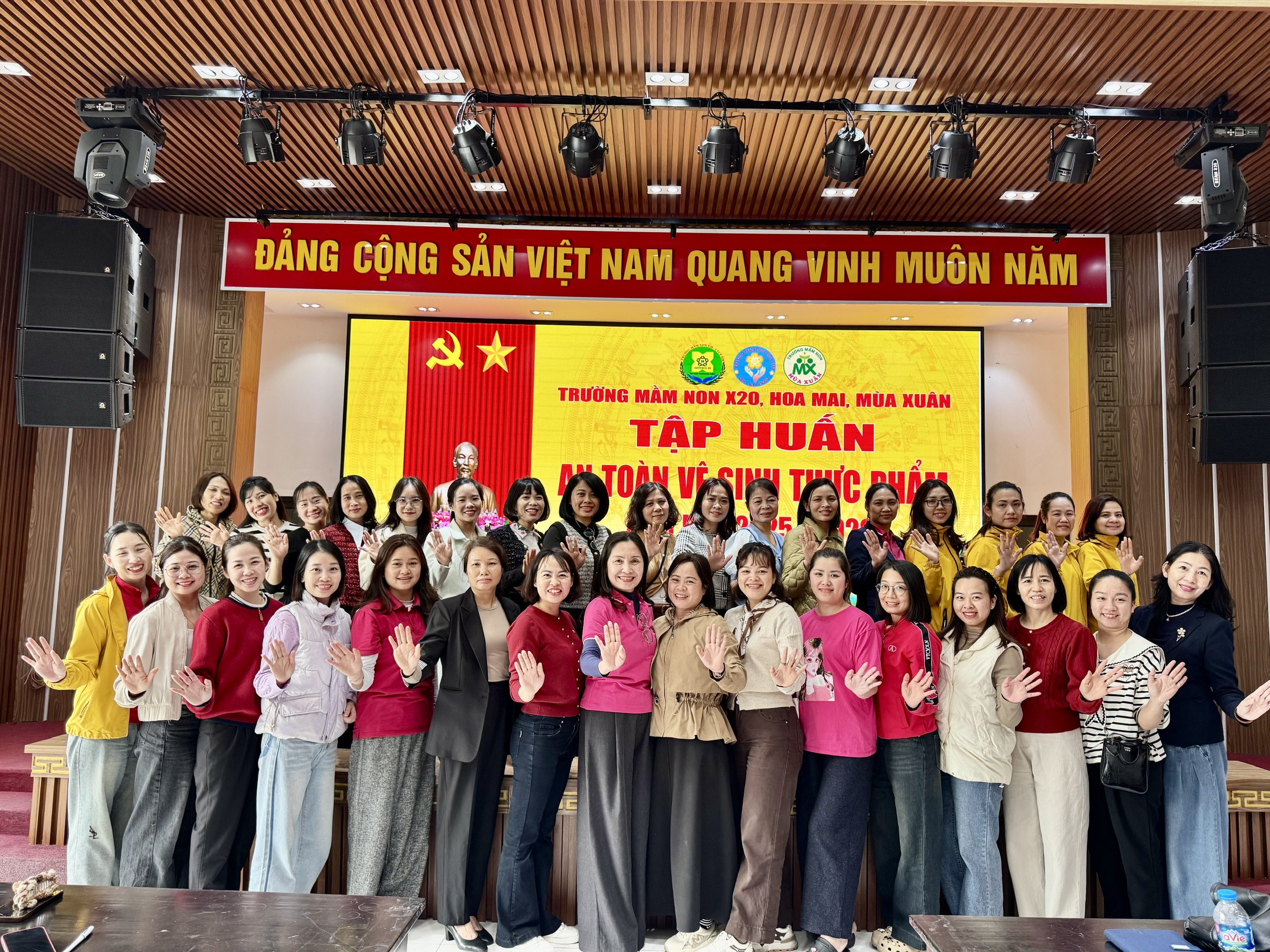 Nhằm nâng cao kiến thức và kỹ năng đảm bảo an toàn vệ sinh thực phẩm trong công tác chăm sóc, nuôi dưỡng trẻ, Trường Mầm non X20 đã phối hợp cùng Trường Mầm non Hoa Mai và Trường Mầm non Mùa Xuân tổ chức chương trình tập huấn kiến thức An toàn vệ sinh thực phẩm cho đội ngũ cán bộ, giáo viên, nhân viên của ba nhà trường.